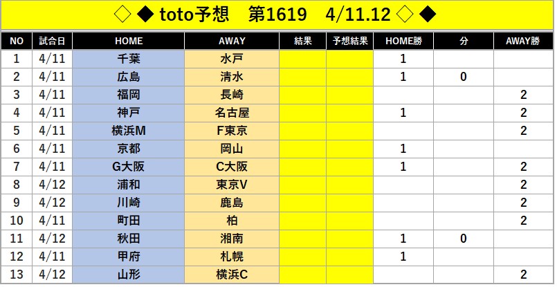 今回は第1621回toto予想になります。